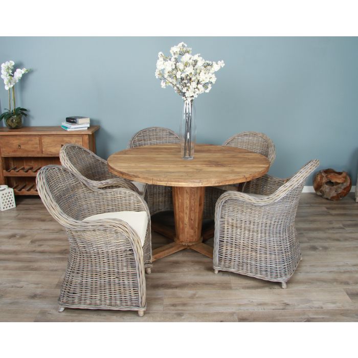 Save space and make a statement with our appropriately named Character dining table, this circular table can slot into your daily routine to comfortably seat 4-6 people. The beautifully crafted Reclaimed Teak tabletop has a rustic open slatted design made up from individual slats, that sits upon a barrel-style pedestal base. The Character tables appearance is effortless and completely timeless with a natural fine wax finish, focusing on practicality with its minimal 'X' leg platform, making this table a great conversation piece. Accompanied by our classically designed Riviera chairs which has comfortable rounded edges that flow throughout the chair to create a sleek and neat appearance. Style and substance combined to give this chair its sturdy stature as well as its ashy tones finishing the look.