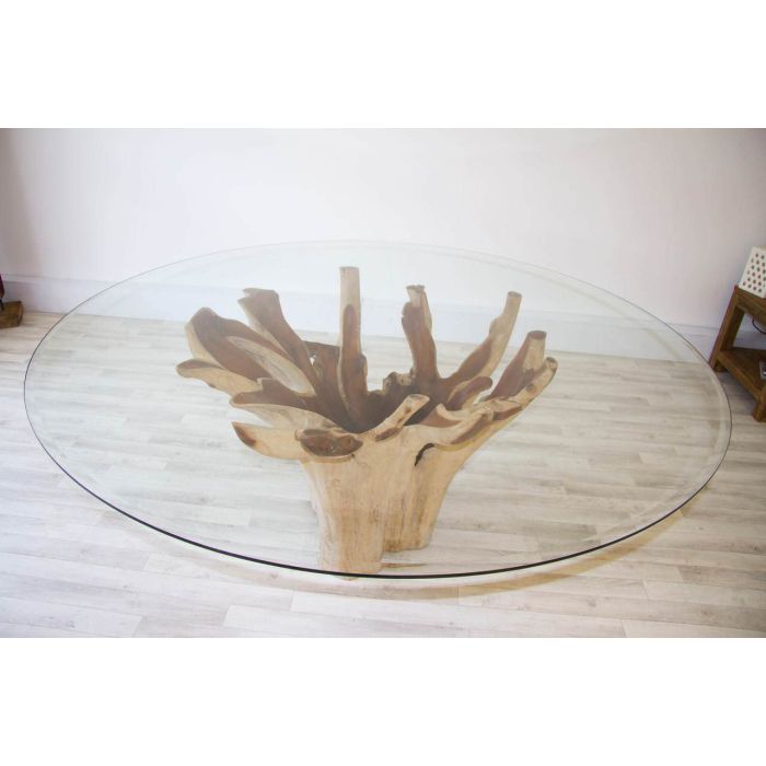 Our stunning and unique flute style teak root dining table has been manufactured from reclaimed teak root making this a very solid and strong centre piece to any dining area! Each root is very unique as these works of art differ from our standard teak roots due to theThe outer part of the root has a beautiful bleached effect that contrasts beautifully with the natural golden teak flute bowl and solid root base, you will never see the same root detailing twice, the sculptured root base is sourced from the National Indonesian Eco Programme. Excavating the roots encourages regrowth of forests and promotes sustainable livelihoods for local people. When creating these wonderful masterpieces there is no waste as any smaller pieces of teak root are sculpted into amazing individual mirror designs, stunning bowls or even root balls that can be used for various things. These are the tables similar to that found on BBC's Saturday Kitchen television show on Saturday mornings. Our 1.8m teak root is definately a statement piece as they are ideal for a larger dining area and can seat 8 people comfortably, with room to seat 10 people when needed, they are extremely heavy pieces but are absolutely stunning and will wow your guests everytime they come to visit for years to come.