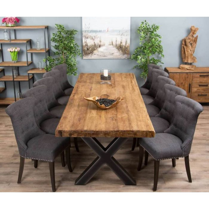 We have another member that has been added to our Urban Fusion collection and we absolutely love it! The 3m dining table has a seamlessly rustic reclaimed teak table top where the characterful grain of the timber can really be appreciated, the legs are a unique cross shape that is made from iron providing strength and durability. The Urban Fusion cross dining table has been paired with our luxurious Windsor Ring Back dining chairs in Dove Grey to add style and sophistication to a seamlessly rustic set, the seat has been filled with foam and sprung webbing to offer maximum comfort and support that will not sag over time and remain plump for years to come.