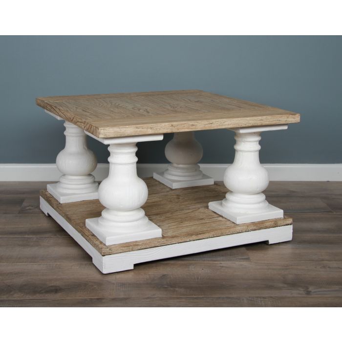 Our stylish coffee table is made from reclaimed pine and features a taplock style tabletop and handy magazine shelf, this table also features beautiful carved painted legs. The coffee table has a shabby chic design and as it's made from solid wood you can be sure that you will get many years of use out of it. As with all of our furniture, this is built to a high quality with great craftsmanship. Buying reclaimed pine furniture means that the wood has already been seasoned, so is extremely strong and less susceptible to marking, perfect for a coffee table! We are certain that this chunky coffee table will feel right at home in your lounge or conservatory for all the family to enjoy and may even be cheeky enough to prop their feet up!