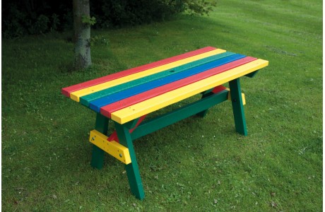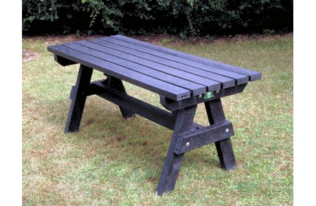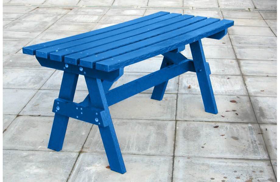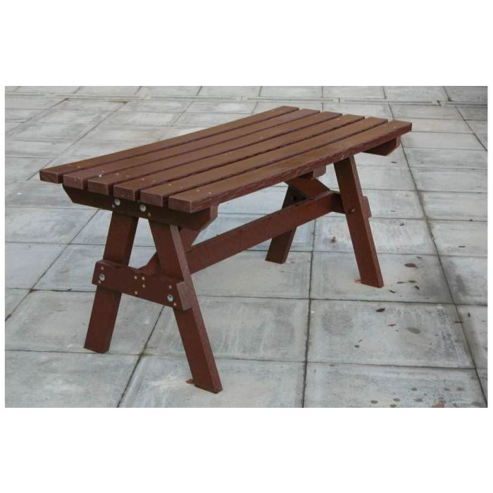The recycled plastic A-frame table is great for a get together with family and friends or can be placed in a public area. It features an open slatted top, parasol hole and sturdy A-frame structure. Made from 100% recycled plastic, the product is maintenance-free, does not rot, corrode or splinter. There is no staining or varnishing required, and the product can be left outdoors all year round.