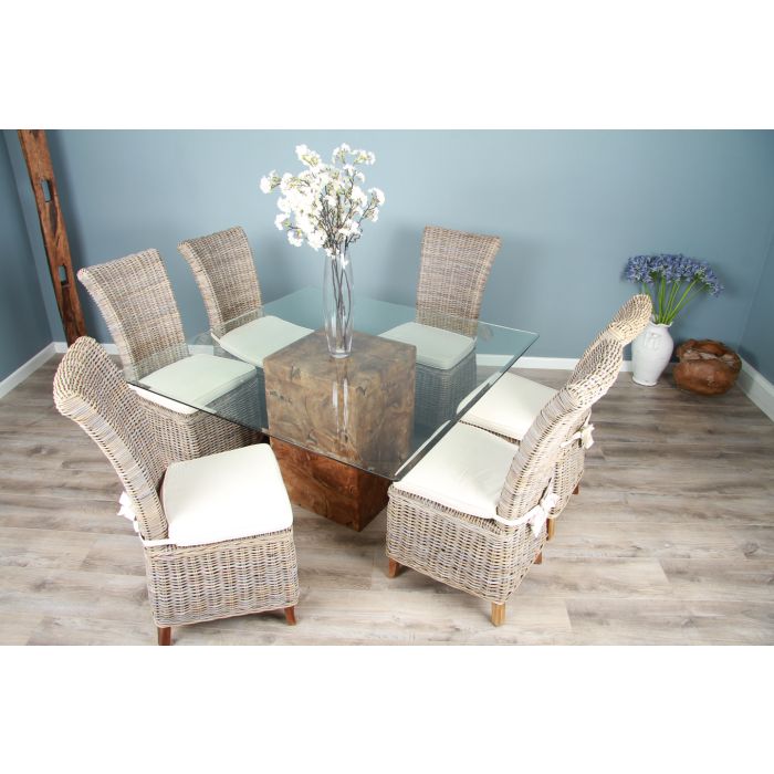 Our teak root block can seat 6 people comfortably and has been paired with our elegant Latifa chairs that not only offer comfort and support but they have plenty of style to match, the unique stature of the block root allows plenty of room for chairs to be tucked underneath. To make this gorgeous set even more unique you can place a light in the pedestal which will create a truly atmospheric dining experience, it will impress your guests everytime they visit for years to come.