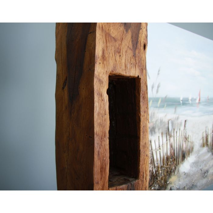 A sustainable wooden teak artefact that has been mounted on a stand to ensure that this great piece of art and history can stand tall and stable.   The material used for manufacturing these artefacts has been sourced from reclaimed timber that would previously have been used as building timbers, gateposts or railway sleepers. This reclaimation process allows an otherwise discarded product to be repurposed and crafted into a beautiful piece of art. Each artefact is unique and full of charm.