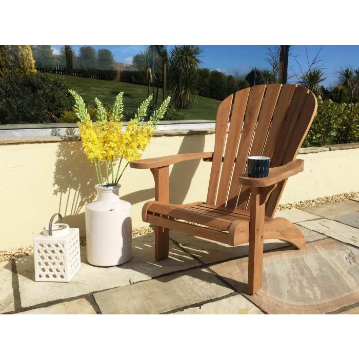 Our stunning Teak Adirondack relaxing garden chair is perfect for sunny days in the garden and making the most of the sunshine! The Adirondack garden chairs provide maximum comfort as the angles of the chair fit perfectly to the shape of your body. The Adirondack Chairs have been manufactured from Grade C Teak making this chair extremely strong and sturdy and is sure to last you many years to come due to its high-quality construction. The Teak Adirondack chairs have been pretreated and are able to be left outside all year round with no further treatment, they are protected against UV, decay and insects.